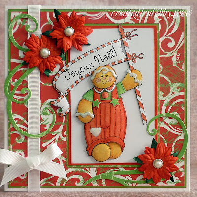 Gorgeous card! Love the wee gingerbread man! and the swirls and poinsettis are beautiful x
