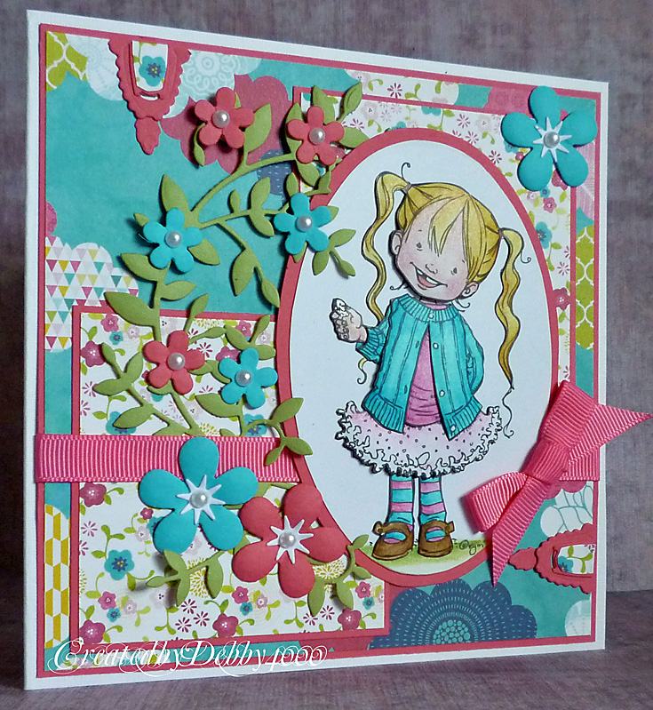 This is such a lovely bright and sunny card Debby. Love the little girl with her missing tooth, so sweet. The flowers and leaves dies are gorgeous and finished with that nice vibrant ribbon. x